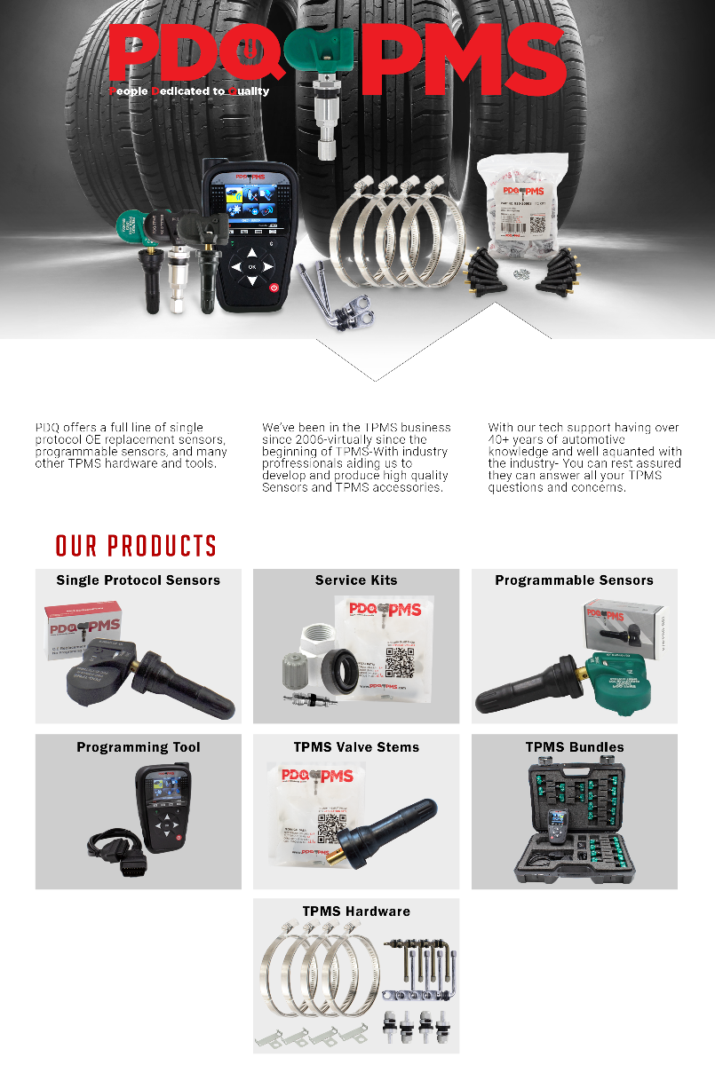 - PDQ tire pressure sensors are manufactured to exacting OE standards to ensure reliable performance and durability, it is constructed of high quality material, premium chip and durable lithium battery, every component has undergone extensive professional testing—including signal, operational temperature, thermal shock, humidity, and proof pressure to ensure trouble-free installation and excellent performance.